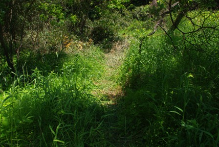 両足で草を踏み固め、ケモノ道を作り進入。