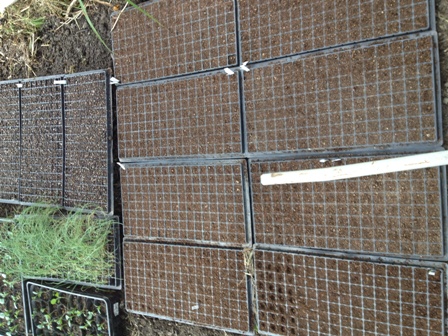 の苗をその畝に直ぐに定植できるよう発芽から苗へ成長するまでの過程をポットで過ごしてもらっています。