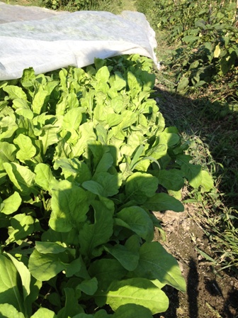 ルッコラ。害虫対策で不織布をかけて栽培しました。