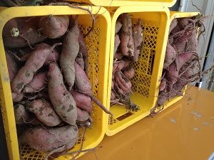 サツマイモの第一弾を堀上げました。
