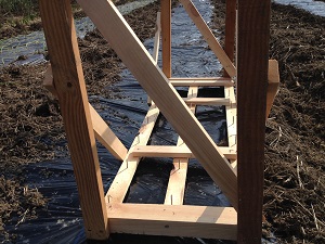 地面にさした時に穴を広げる為上下左右に揺らすので、筋かいを入れておくと安定します。