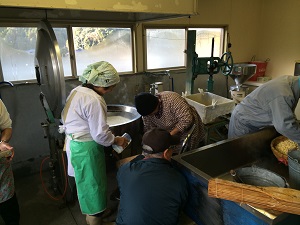豆腐を作ろう!ということで切山の有志で6月に蒔いた大豆が昨日豆腐になりました!
