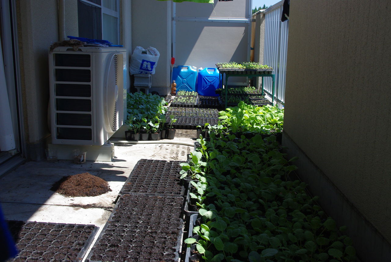 田中野菜はベランダが育苗場。ベランダがほぼ苗達でうまっております・・・・