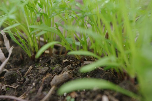 こんな状態に芽が出た人参を間隔をそろえて抜くだけ。